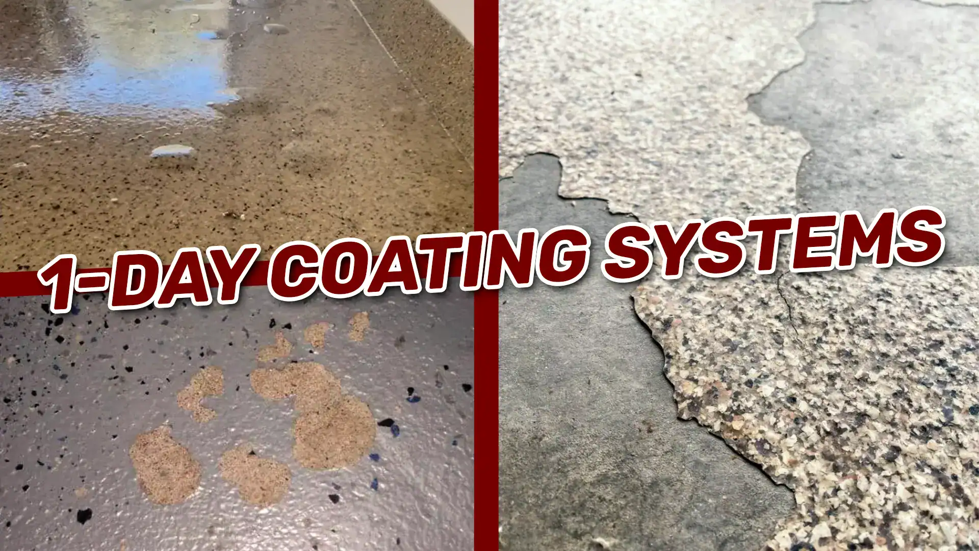 Here’s what really happens: most 1-day crews apply a polyaspartic or polyurea coating directly to bare concrete. These fast-curing products don’t have time to penetrate the surface and form a strong bond. (And they can only be applied thinly). Moisture trapped beneath the coating builds pressure until the wafer-thin, poorly-penetrating polyurea-polyaspartic base coat begins to lift. And the entire coating system, no matter the number of layers, is only as strong as it’s primer coat! Using the quick-curing polyurea-polyaspartic as the primer coat is a shortcut that saves hours but shortens the life of your floor dramatically.