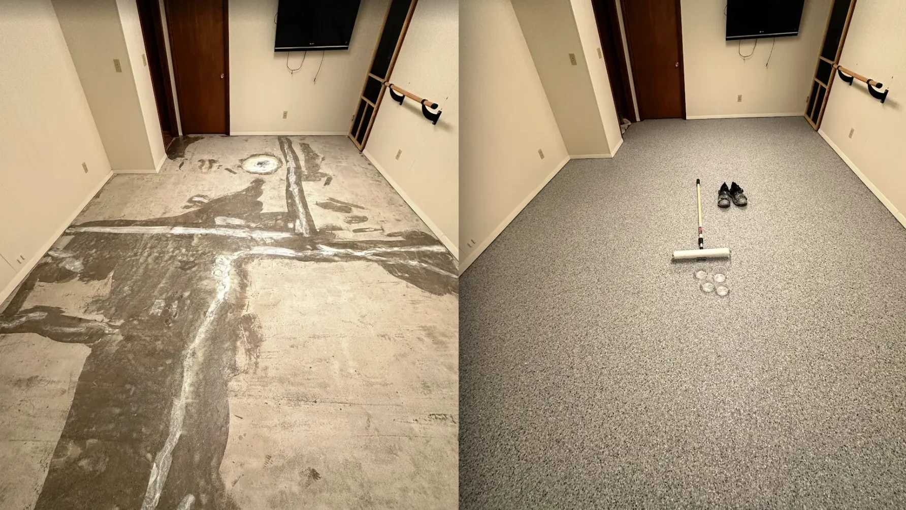 Use of the slower-curing epoxy base coat is one reason professionally installed systems often require a 2-day installation instead of a rushed 1-day approach. Moisture mitigation protects the epoxy floor coating where most failures begin, below the surface.