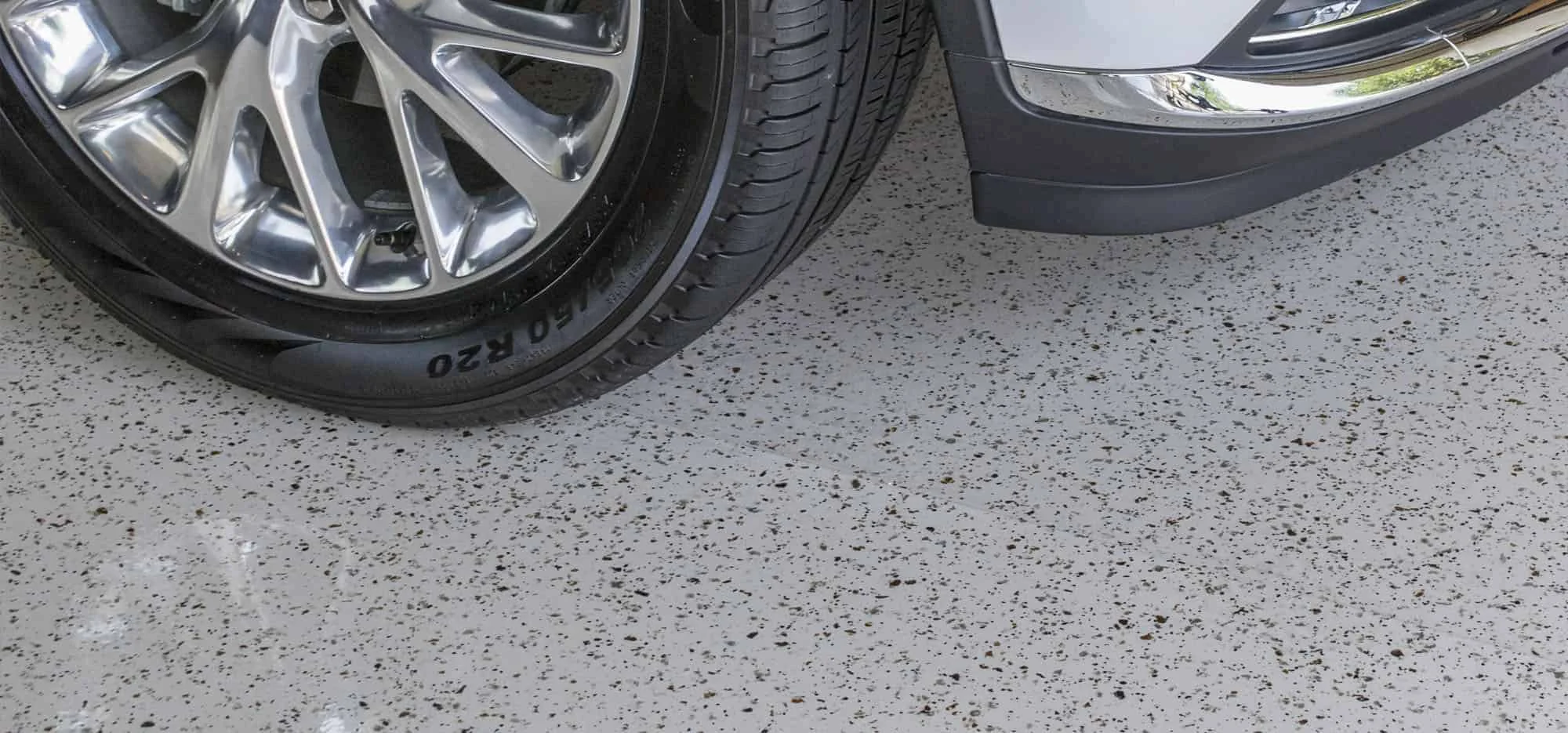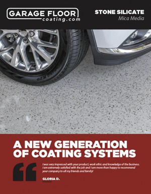 Our Deluxe and Premium “partial-chip” coating systems are the most basic (and least expensive) floor coatings. They incorporate thermoplastic (polyvinyl acetate or PVC) chip blends only… broadcast in a medium (Deluxe) to extra-heavy (Premium) spread. The Deluxe has no clear coat (and so never installed in garages), while the Premium sports a single clear topcoat. Our Diamond Effects and Stone Silicate coating systems are “next-level” partial chip coatings: identical to the Premium, with one important exception: the chip blends incorporate both thermoplastic and mica stone flakes. While the thermoplastic chips provide color and contrast, the mica provides “reflectivity” (the sparkle!) that you won’t get with thermoplastic-only flooring.